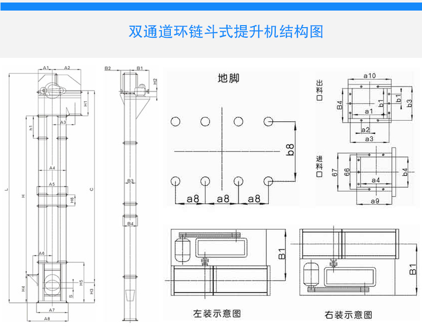 運行部件---由料斗和專用圓環(huán)鏈條組成,鏈條抗拉強度高、耐磨性好。