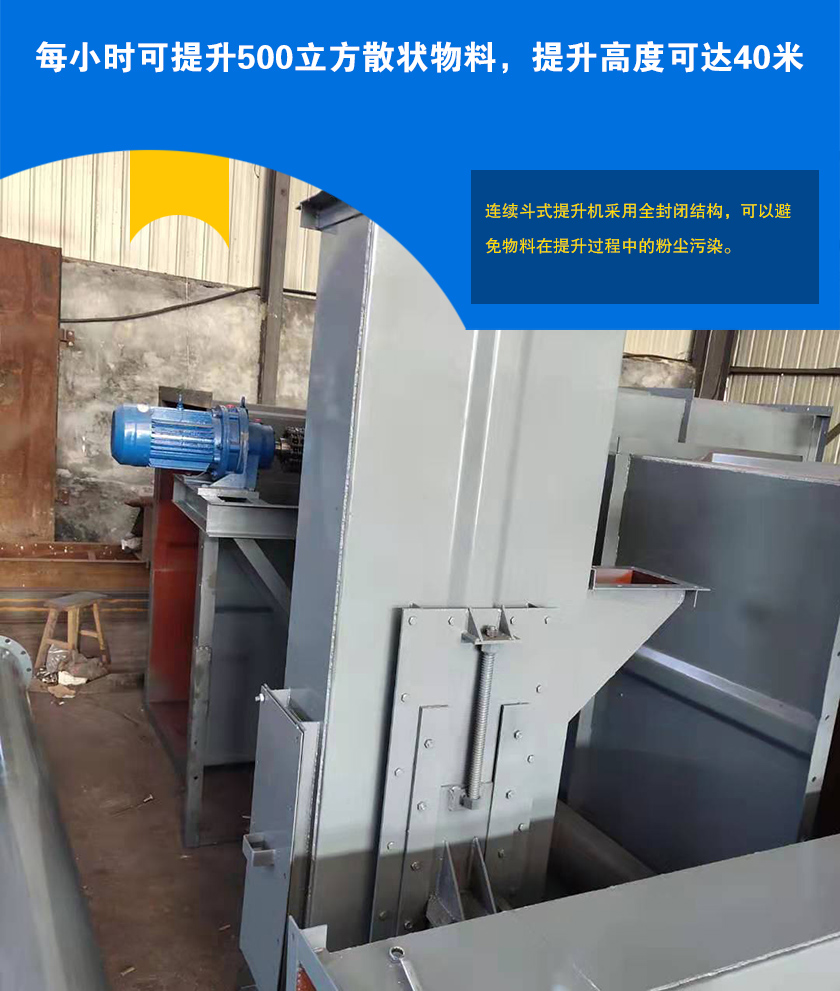 連續(xù)斗式提升機(jī)采用鏈條或皮帶進(jìn)行物料的垂直提升工作,提升高度可達(dá)40米,每小時可提升500立方的散裝物料,連續(xù)斗式提升機(jī)可按照用戶輸送要求定制設(shè)計.