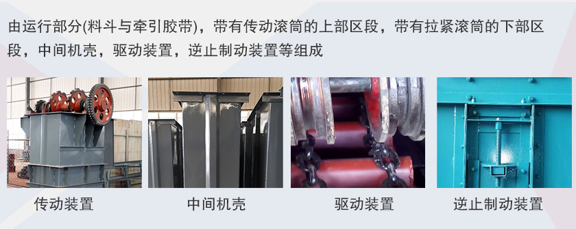 td斗式提升機(jī)牽引件為橡膠帶,料斗以一定的間隔固定在橡膠帶上,橡膠帶分別繞過(guò)提升機(jī)頭部和底部的滾筒,構(gòu)成具有上升有載分支和下降無(wú)載分支的閉合環(huán)形系統(tǒng);工作時(shí),布置在提升機(jī)頭部的驅(qū)動(dòng)裝置通過(guò)頭部滾筒將動(dòng)力傳給橡膠帶和料斗,物料從提升機(jī)底部的進(jìn)料口進(jìn)入料斗,料斗將物料提升至頭部的卸料口,在離心力和重力的共同作用下,料斗中的物料經(jīng)卸料口卸出。