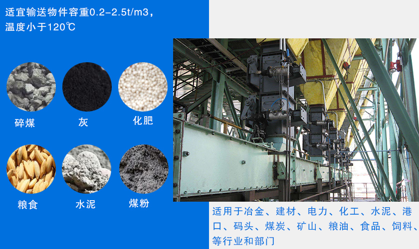 埋刮板鏈式輸送機廣泛適用于冶金、建材、電力、化工、水泥、港口、碼頭、煤炭、礦山、糧油、食品、飼料、等行業(yè)和部門,適宜輸送物件容重0.2-2.5t/m3,溫度小于120℃,如,碎煤、灰、水泥、糧食、化肥等。