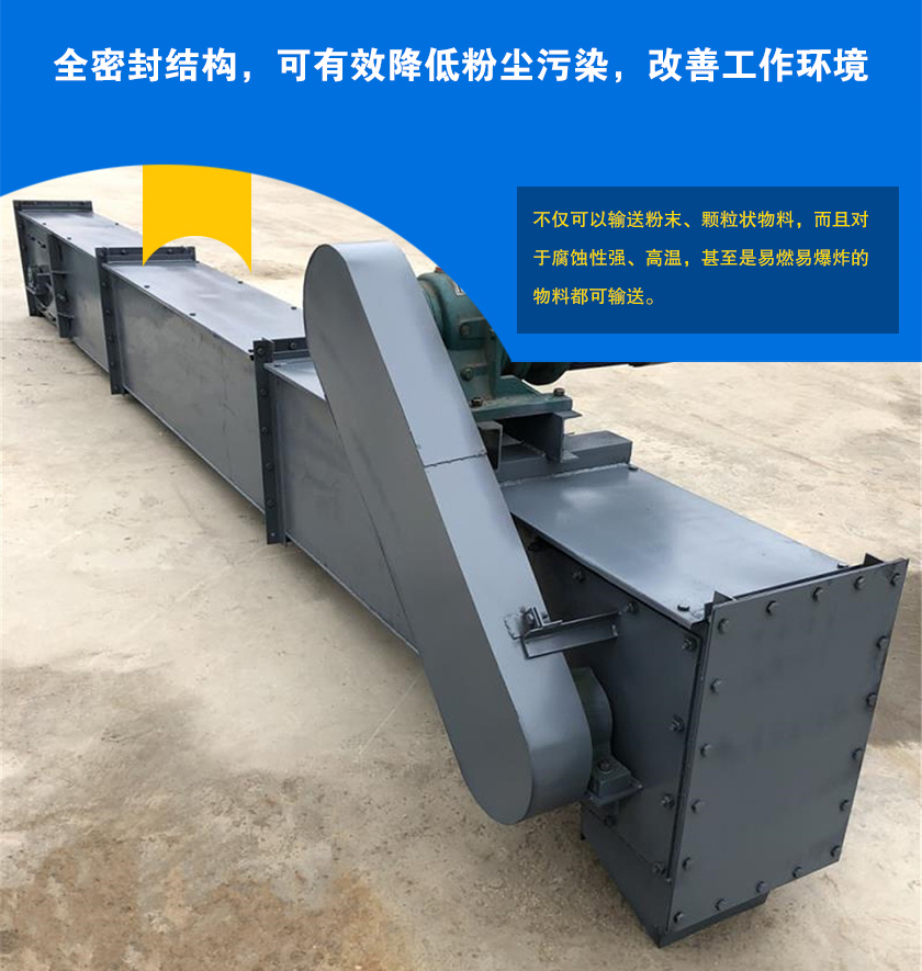 埋刮板鏈式輸送機是借助刮板鏈條在封閉的矩形斷面的殼體內連續(xù)輸送散狀物料的運輸設備,刮板鏈條完全埋在物料下面,埋板板鏈式輸送機機殼采用全密封結構,無粉塵污染.