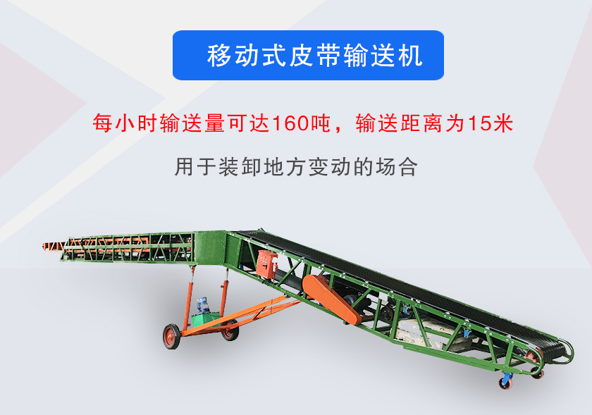 移動(dòng)式皮帶輸送機(jī)主要用于煤炭、冶金、礦山、化工、建材、碼頭、倉庫等輸送散狀及成件物品。