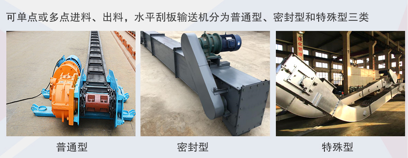 水平刮板輸送機(jī)是指水平方向上輸送粉狀及顆粒狀物料的設(shè)備,可單點(diǎn)或多點(diǎn)進(jìn)料,出料,水平刮板輸送機(jī)分為普通型、密封型和特殊型三類,采用密封式設(shè)計(jì),可防止粉塵污染.