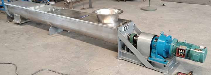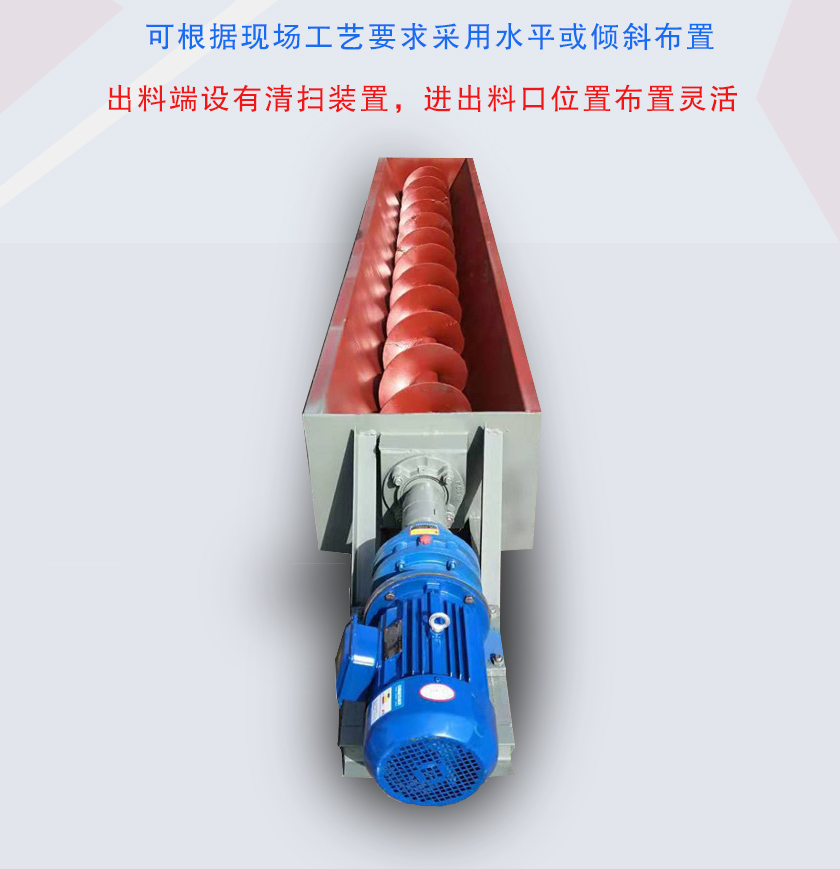 煤粉螺旋輸送機(jī)是由驅(qū)動(dòng)裝置、中間軸承、螺旋軸、螺旋機(jī)本體、螺旋葉片、頭節(jié)、中間節(jié)、尾節(jié)、進(jìn)、出料裝置等部件組成。