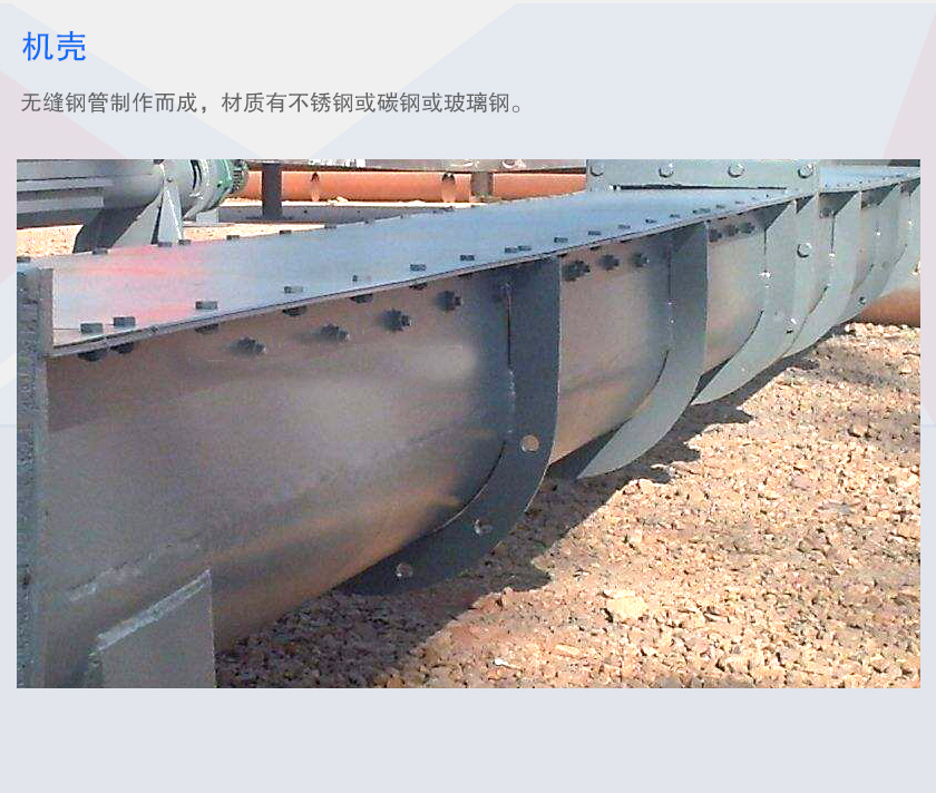 機(jī)殼:無(wú)縫鋼管制作而成,材質(zhì)有不銹鋼或碳鋼或玻璃鋼。