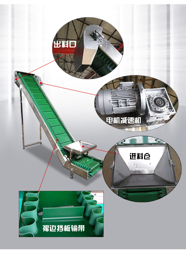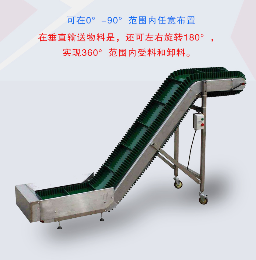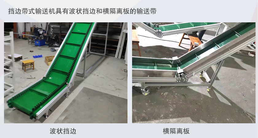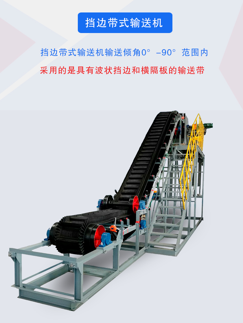 1、波狀擋邊輸送帶和橫隔板設(shè)計(jì),可以防止物料在輸送過程中散落或下滑。