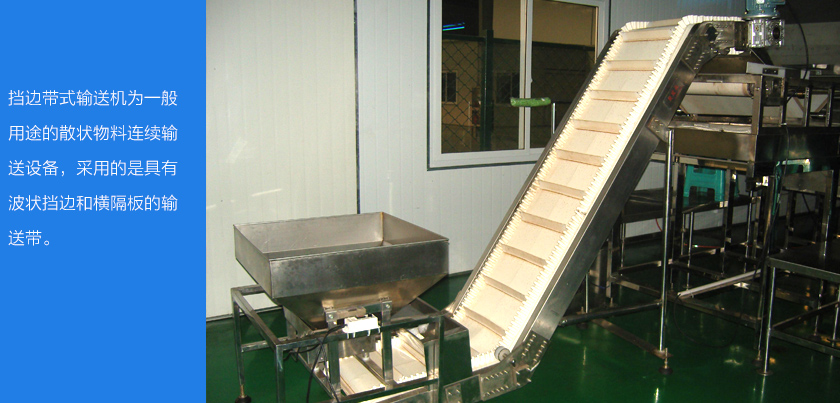 擋邊帶式輸送機(jī)具有波狀擋邊和橫隔離板的輸送帶,適用于大傾角連續(xù)輸送散裝物料,擋邊帶式輸送機(jī)的輸送帶兩則有波狀紋的擋邊,皮帶中間部位有橫隔板,在輸送物料的過程中不容易撒料和下滑,適用于大傾角連續(xù)輸送散狀物料。