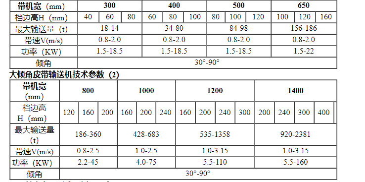 4、擋邊帶式輸送機(jī)輸送傾角0°-90°范圍內(nèi)。
