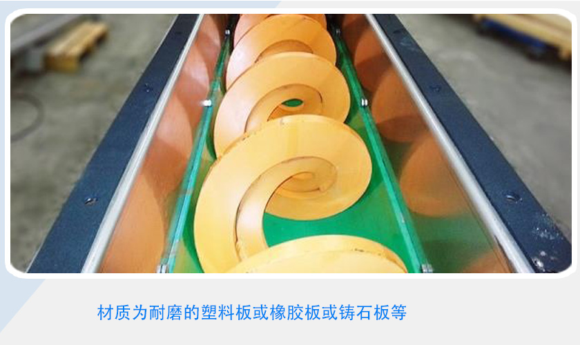 無軸螺旋輸送機主要由驅動裝置、頭部裝配、機殼、無軸螺旋體、槽體襯板、進料口、出料口、機蓋(需要時)、底座等組成。