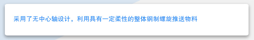 無軸螺旋輸送機可輸送傳統(tǒng)有軸螺旋輸送機和皮帶輸送機不能或不易輸送的物料,如顆粒狀和粉狀物料、濕的和糊狀物料、半流體和粘性物料、易纏繞和易堵塞物料、有特殊衛(wèi)生要求的物料。無軸螺旋輸送機的性能特點是:無軸螺旋輸送機與傳統(tǒng)有軸螺旋輸送機相比,由于采用了無中心軸設計,利用具有一定柔性的整體鋼制螺旋推送物料,因而具有以上突出優(yōu)點,性能好。與有軸螺旋輸送機相比,重量和成本都會減少不少。