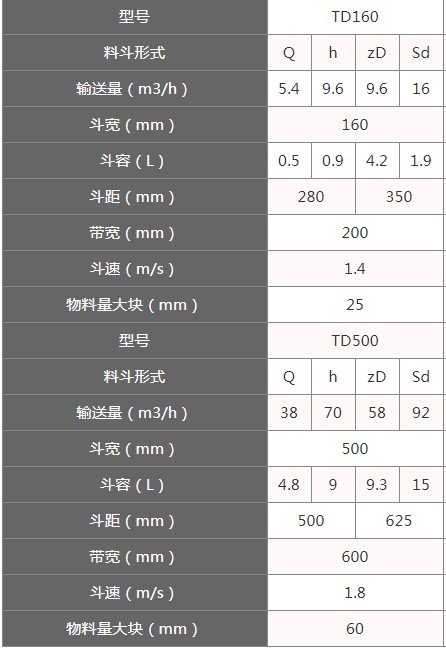 1、表中斗容為計(jì)算斗容,輸送量按填充系數(shù)0.6計(jì)算得出。