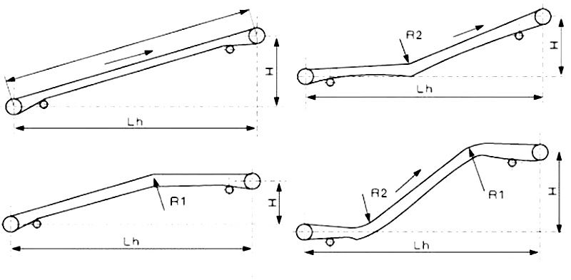 爬坡皮帶輸送機(jī)由上水平段、傾斜段和下水平段組成。