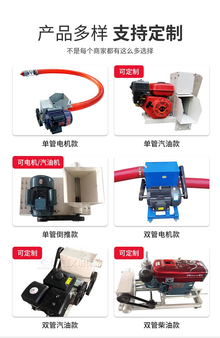 一般情況下,車(chē)載吸糧機(jī)采用的是220V電壓,單相異步電機(jī),使用廣泛,安全可靠,不易產(chǎn)生事故,也可以選擇380V電壓,另外在沒(méi)有電源的情況下,也可以選擇汽油或柴油機(jī)。