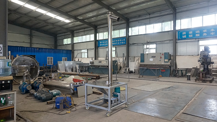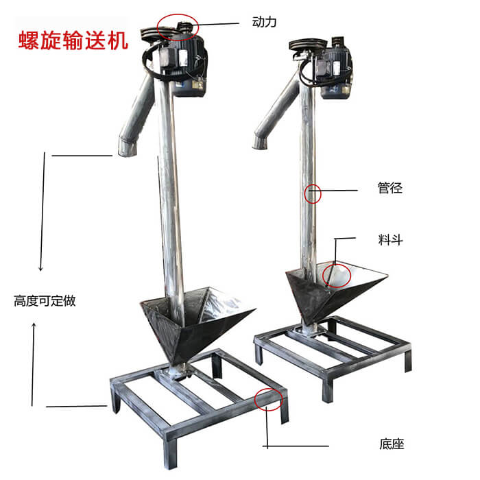 垂直螺旋輸送機(jī)由水平進(jìn)料螺旋和垂直螺旋組成,從料倉或料斗或從上游進(jìn)料裝置進(jìn)料,保證進(jìn)料有足夠的倉壓,確保物料能順利地向上輸送,垂直提升高度可達(dá)8米。