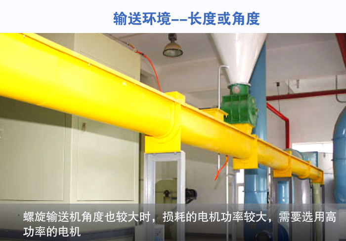 長度超過15米,管壁厚度必須在10-15mm;角度大于30度,選用高功率電機。輸送環(huán)境決定了螺旋輸送機的長度和連接方式,輸送長度較大時,要求螺旋輸送機管壁的厚度必須要在10-15mm,否則螺旋輸送機容易斷裂。螺旋輸送機角度也較大時,損耗的電機功率較大,需要選用高功率的電機。