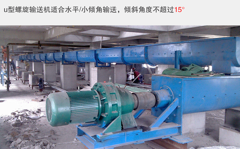 u型螺旋輸送機(jī)輸送傾斜角度不超過15°。