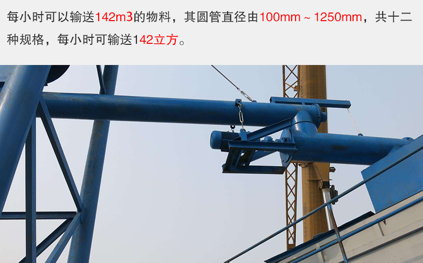 管式螺旋輸送機(jī)每小時可以輸送142m³的物料,其圓管直徑由100mm~1250mm,共十二種規(guī)格,每小時可輸送142立方。