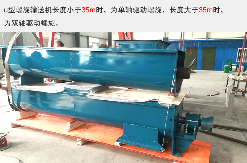 u型螺旋輸送機(jī)長度小于35m時,為單軸驅(qū)動螺旋,長度大于35m時,為雙軸驅(qū)動螺旋。u型螺旋輸送機(jī)適合小范圍輸送,不宜長距離輸送。