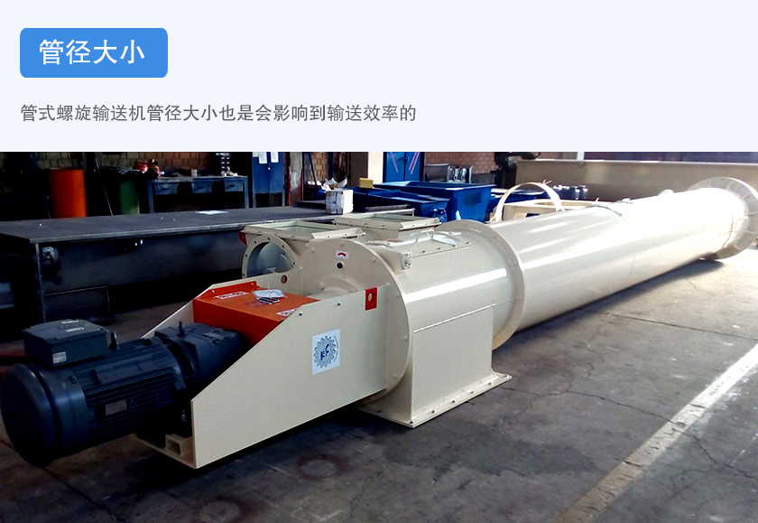 管式螺旋輸送機(jī)管徑大小也是會影響到輸送效率的。在一定條件下,管徑大的管式螺旋輸送機(jī)會比管徑小的管式螺旋輸送機(jī)輸送效率高。